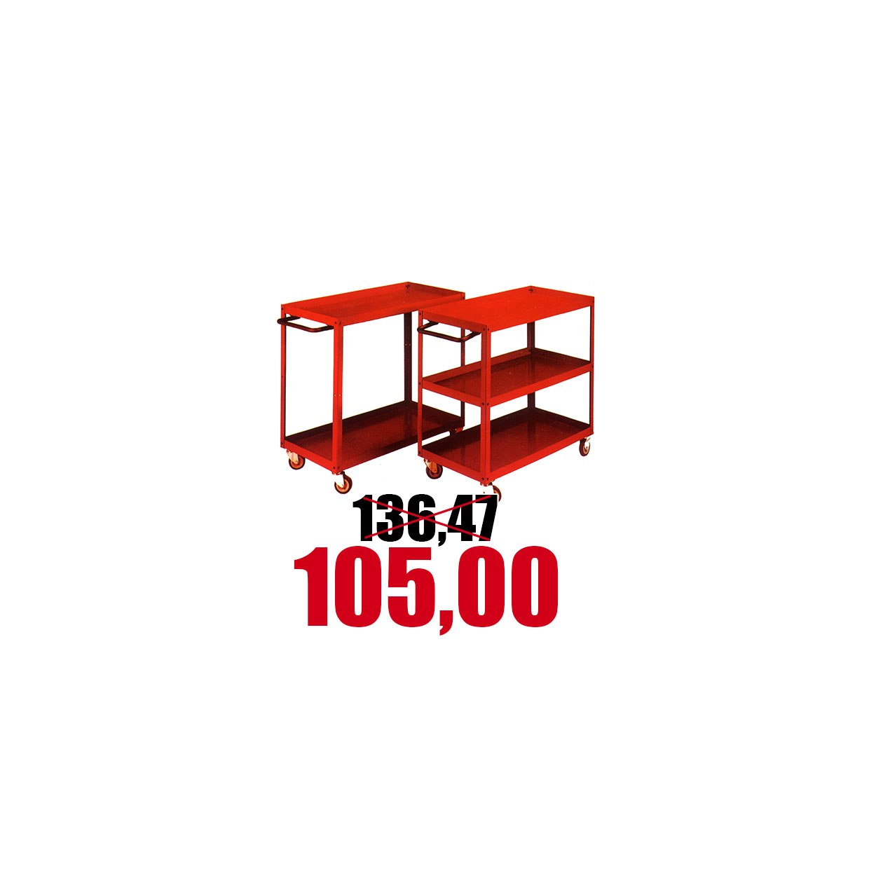 composto da: 3 piani orizzontali 2 ruote fisse e 2 girevoli di cui 1 con freno ø 80 mm 1 cassetto con serratura di sicurezza