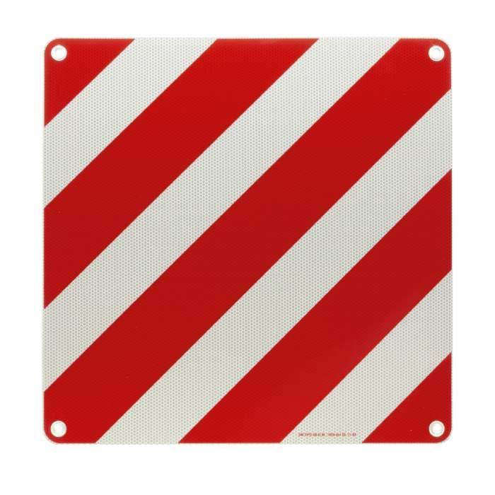 In Italia in base al Decreto Ministeriale n. 1222 del 18-04-1995 che obbliga l’uso del pannello riflettente su supporto di alluminio con relativa omologazione. Il pannello deve essere posto all’estremità posteriore del carico sporgente e grazie ai fori rivettati è possibile l’applicazione in tutti i casi possibili.