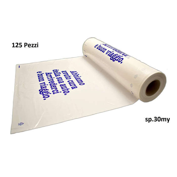Coprisedili monouso in polietilene bianco 30 micron di spessore misure cm.70x160 in confezione da "pz.125" ideali per meccanici, gommisti, carrozzieri, concessionari e tutte le realtà che si occupano della cura delle automobili. Lo spessore della plastica è di 30 micron misure cm.70x160, Vengono venduti in rotoli da 125 pezzi e sono indispensabili per proteggere i sedili delle auto in riparazione o in esposizione.