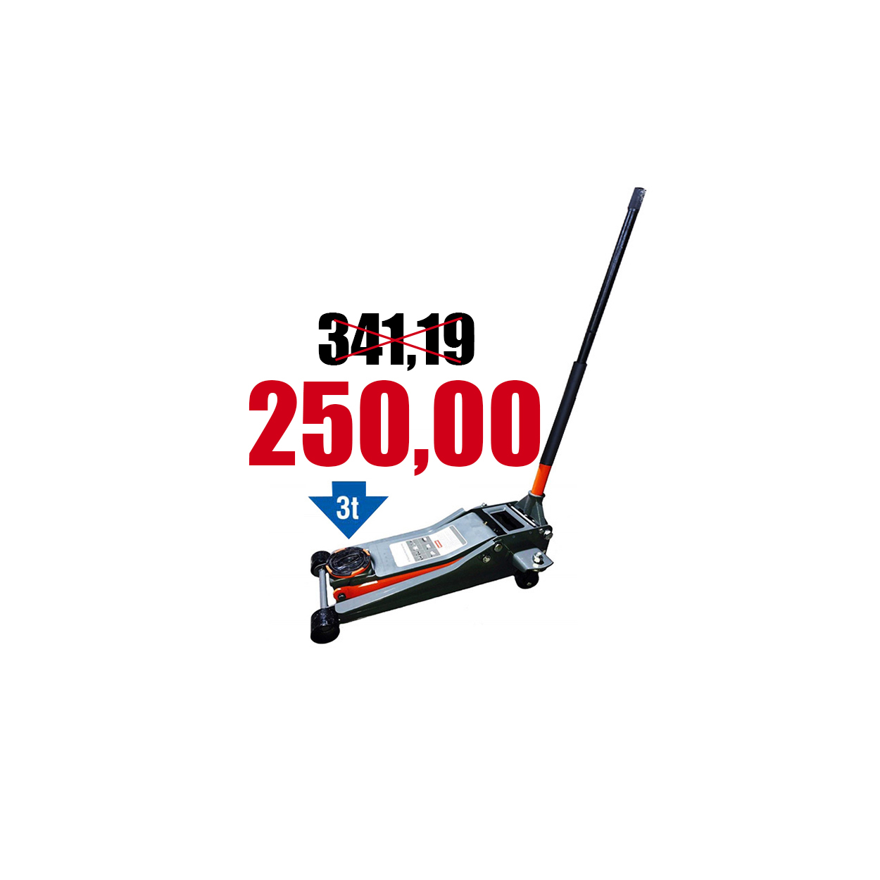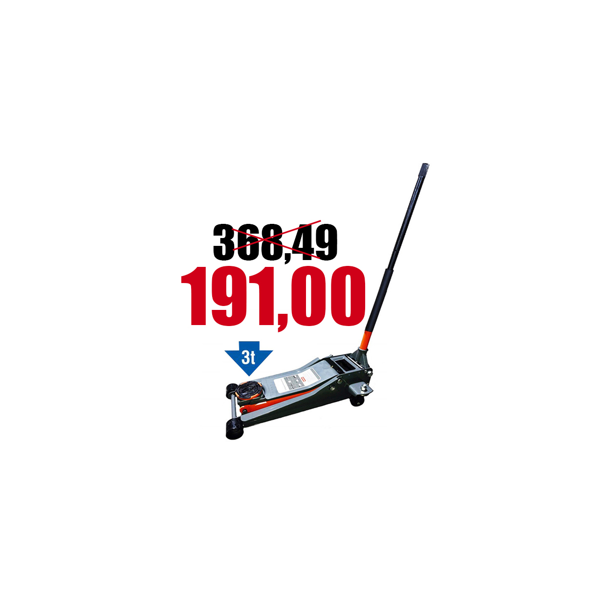 Cric idraulico a profilo ribassato altezza minima mm.80, con 3 tonnellate di portata, a doppio pistone che garantisce una grande stabilità in fase di utilizzo, con un'altezza minima di mm.80 e con le ruote posteriori in acciaio sono direzionabili e appoggiati su cuscinetti a sfera. Il corpo è in acciaio verniciato approvato dall'istituto TUV-GS. Il doppio pistone del nostro cric ribassato permette un utilizzo maggiormente rapido e senza sforzo, inoltre il piattello rotante 360° in gomma robusta protegge il veicolo durante l’utilizzo e grazie alla sua altezza minima di soli 80 mm risulta essere uno dei cric tra quelli con il profilo più basso sul mercato.
