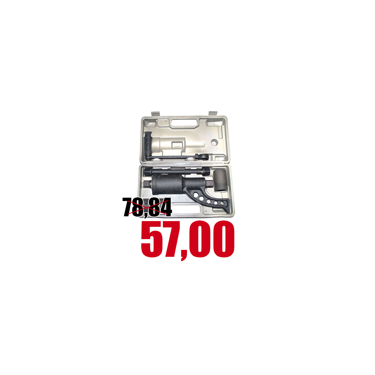 MOLTIPLICATORE DI FORZA IDEALE PER ALLENTARE O STRINGERE DADI/ BULLONI delle RUOTE di MOTRICI, AUTOTRENI, RIMORCHI,AUTOBUS,MEZZI AGRICOLI, QUESTO MOLTIPLICATORE DI FORZA È Un ACCESSORIO CHE VI PERMETTERÀ DI SVITARE SENZA ALCUN SFORZO I BULLONI DELLE RUOTE DI CAMION, RIMORCHI,TRATTORI E FURGONI. GRAZIE AL SUO SISTEMA DI INGRANAGGI INTERNI REALIZZA UN RAPPORTO DI DEMOLTIPLICAZIONE DI 60:1 SVILUPPANDO UNA COPPIA IN USCITA DI BEN 3200n.m, (PARI A 320 KGF.M) RENDENDO ESTREMAMENTE AGEVOLE SVITARE ANCHE I BULLONI PIU' OSTICI. IN DOTAZIONE: DUE BUSSOLE IN ACCIAIO CHROME VANADIUM DI MISURA 32--33mm.PROLUNGA DA 250mm. IL TUTTO IN COMODAVALIGETTA DI PLASTICA